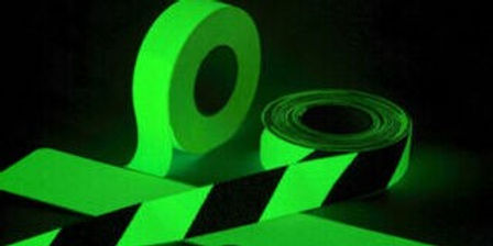 Glow in the dark tape (Photo luminescent tape). Glow in the dark tapes help to increase safety in power outages and dark areas.